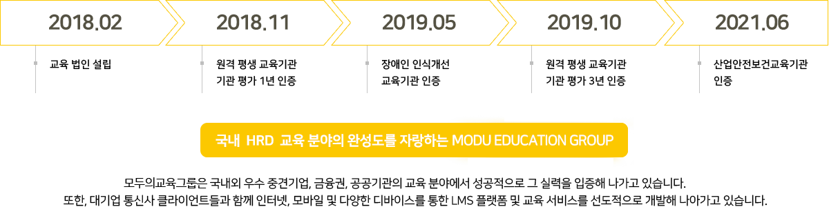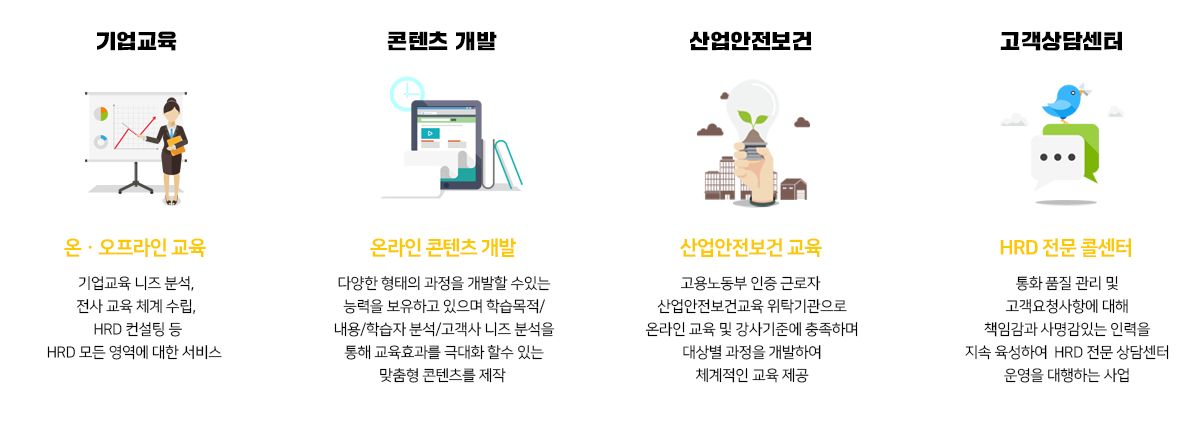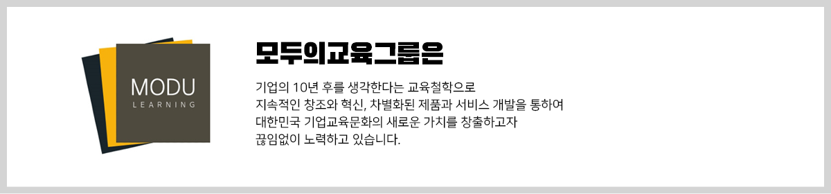 모두의교육그룹은 HRD 전문기관으로써 HRD TOTAL SOLUTION을 제공하는것은 물론 온∙오프라인 기업교육, 교육 콘텐츠개발, 산업안전보건교육,