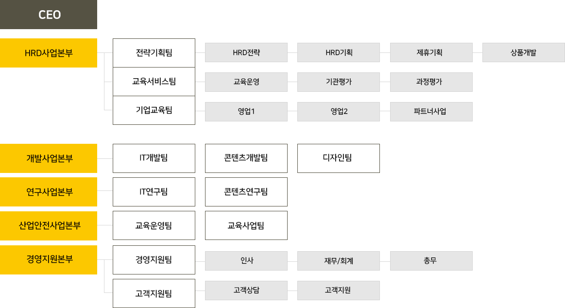 모두의교육그룹, 모든 임직원은 고객의 다양한 니즈를 충족하기 위하여 사업영역에 있어서 다양하고 전문적인 조직체계를 갖추고 있습니다.