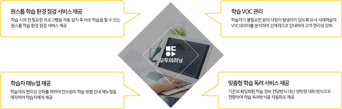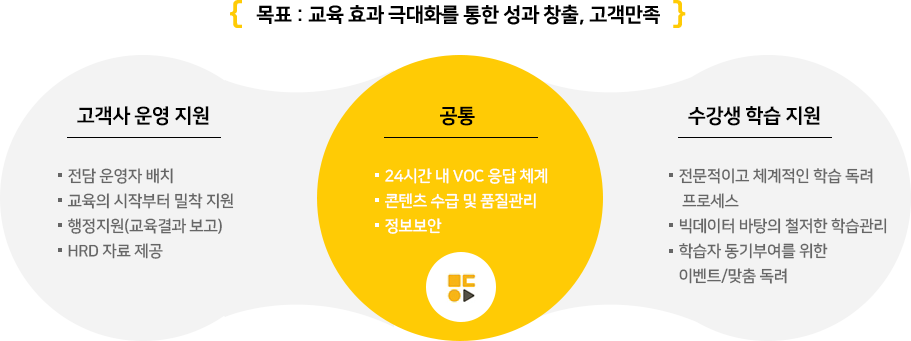 기업별 전담 운영자의 신속하고 친절한 밀착 운영 관리를 통해 고객사에게 성공적으로 인재를 육성할 수 있도록 지원합니다.